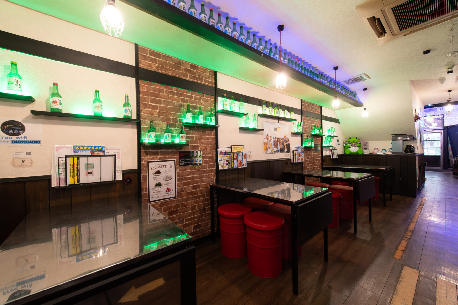 店内は大スクリーンのある1階席と、小さなお子様連れ・会議・ご家族のお集まりなどにぴったりな2階の個室をご用意しております。大スクリーンを設置した1階席では、韓国アイドルのパフォーマンスを眺めながら、一緒に踊って楽しむこともできます。また、50名様ほどまでのフロア貸切も可能ですので、お気軽にお問い合わせください。