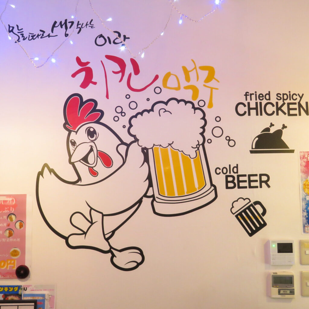 当店自慢の1日熟成したジューシーな「フライドチキン」と、リーズナブルな「2H食べ飲み放題コース(5,300円)」を、韓国のお酒と一緒にお楽しみいただくのがおすすめです。サムギョプサルなどの焼肉メニューもございます。フライドチキンはテイクアウトも可能です。